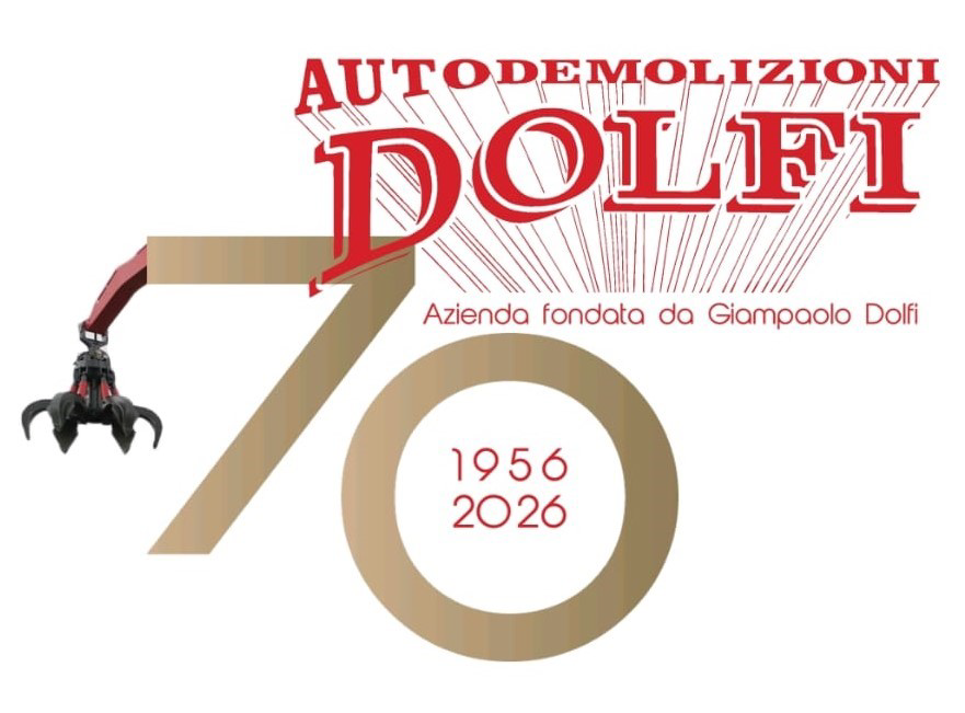 targa, e un’anteprima di due loghi disegnati dai nostri addetti per il 70° anniversario della fondazione di Autodemolizioni Dolfi Giampaolo snc, che ricorrerà nel 2026.
