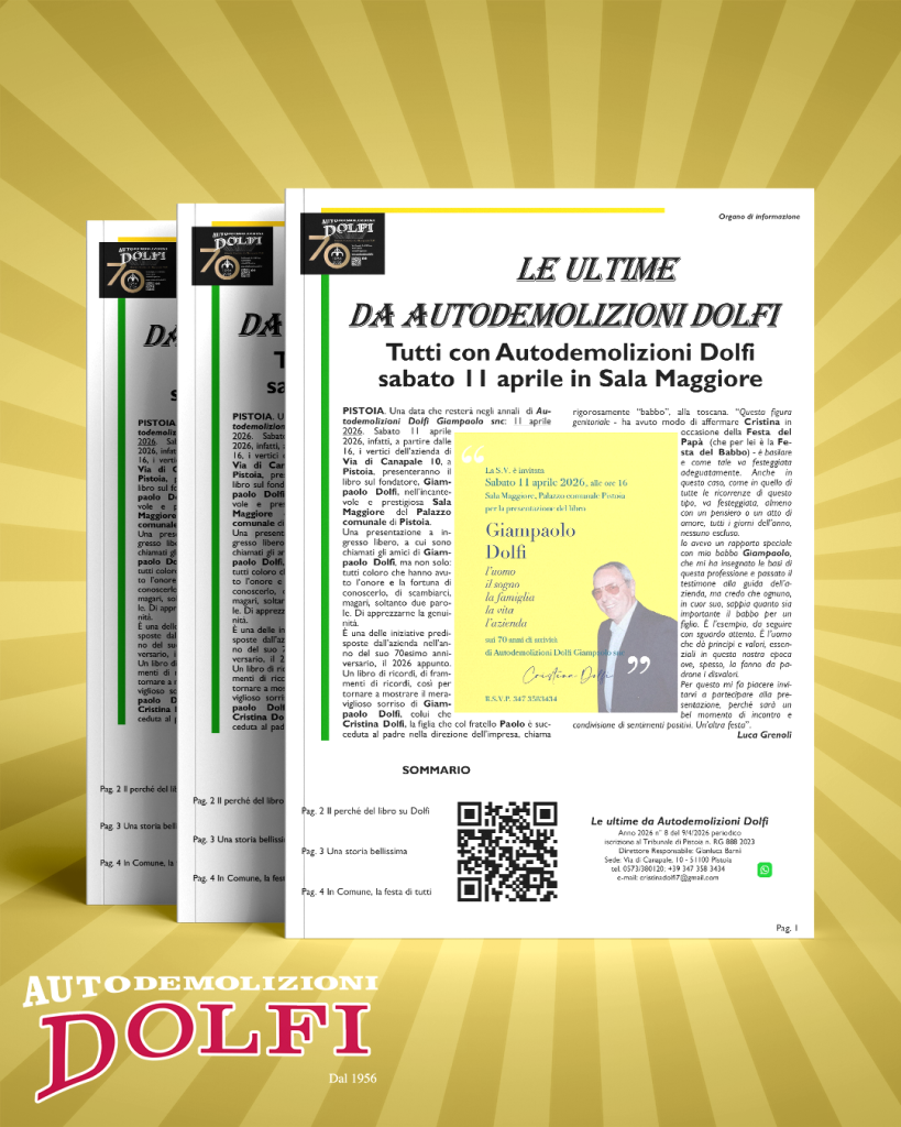 Nelle pagine che seguono vi raccontiamo la storia di Graziana Malesci, preside in pensione dal 2008 e oggi presidente della Fondazione Conservatorio San Giovanni Battista e del Movimento per la Vita. La Fondazione, nata nel 2006 con sede a Pistoia, opera sul territorio promuovendo attività educative e formative per giovani e adulti, iniziative culturali e progetti dedicati alla valorizzazione e tutela delle opere d’arte. Proprio la passione condivisa per l’arte ha fatto incontrare la nostra Cristina e Graziana Malesci, presenza costante alle mostre organizzate da Autodemolizioni Dolfi: prima “La Mostra del Cuore”, poi “Echi di Luce”.